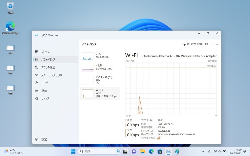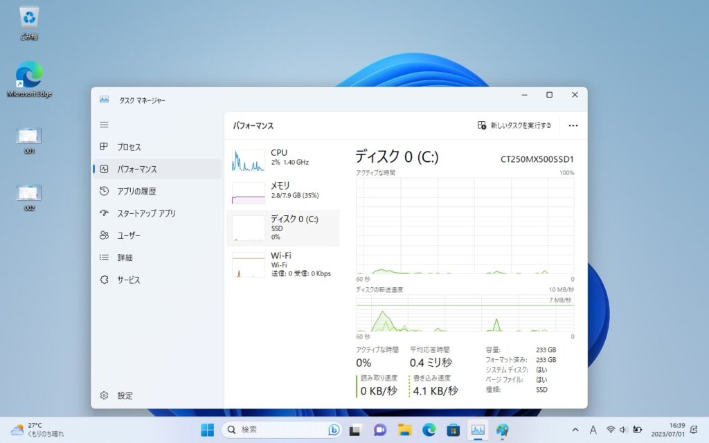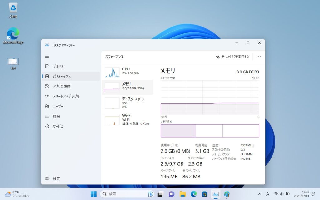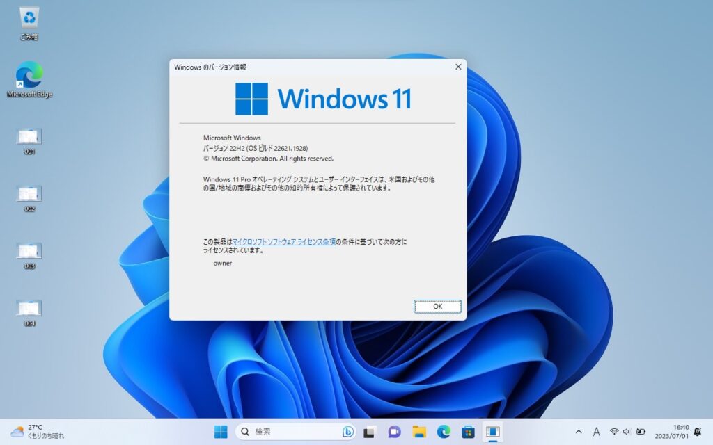OSはWindows11の最新版22H2を入れてあります。動作も問題ありません。