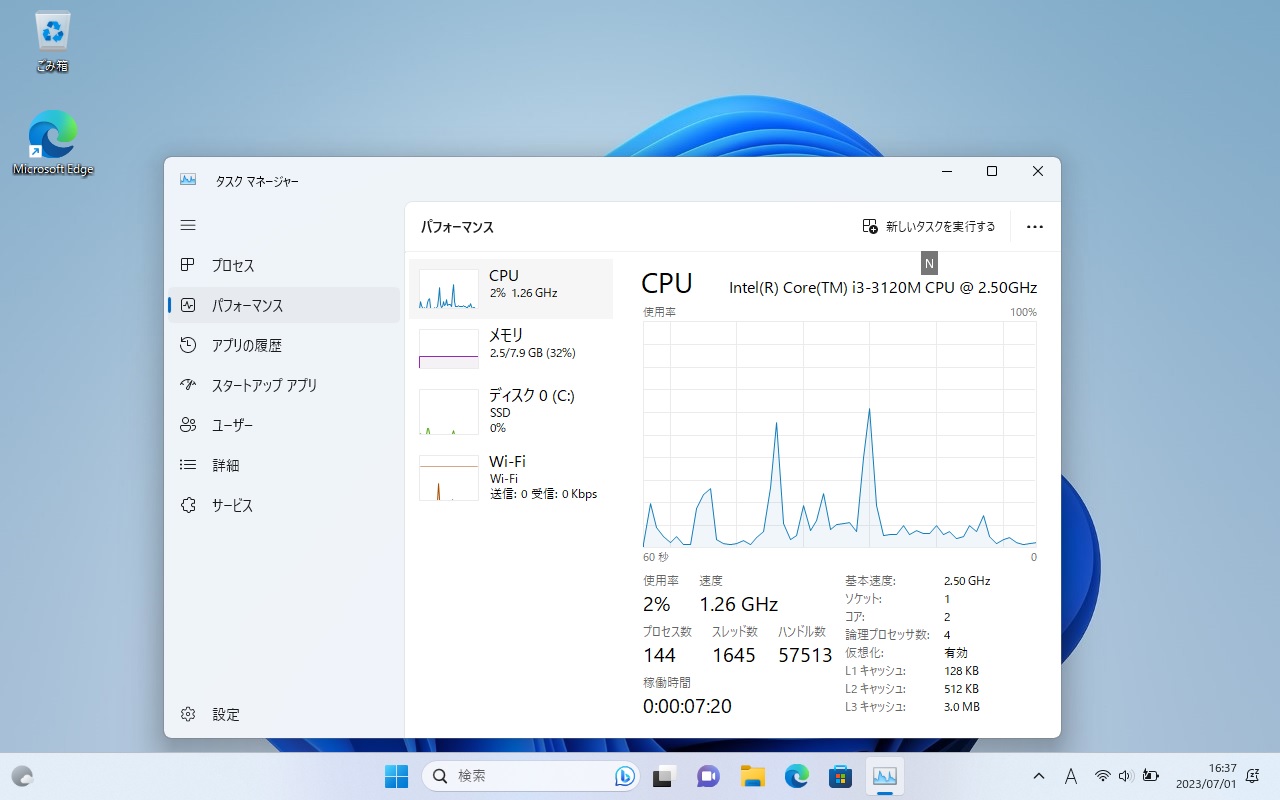 モバイルノートのためCPU性能は抑え気味です(排熱が厳しいため)が、基本的なPC作業には十分なスペックは備えています。
