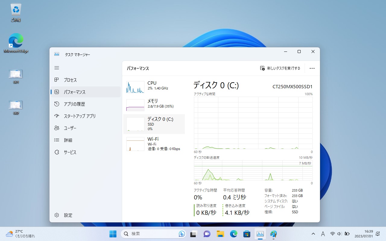 ストレージは高速で信頼性の高いSSD(Crucial MX500シリーズ)に換装しています。